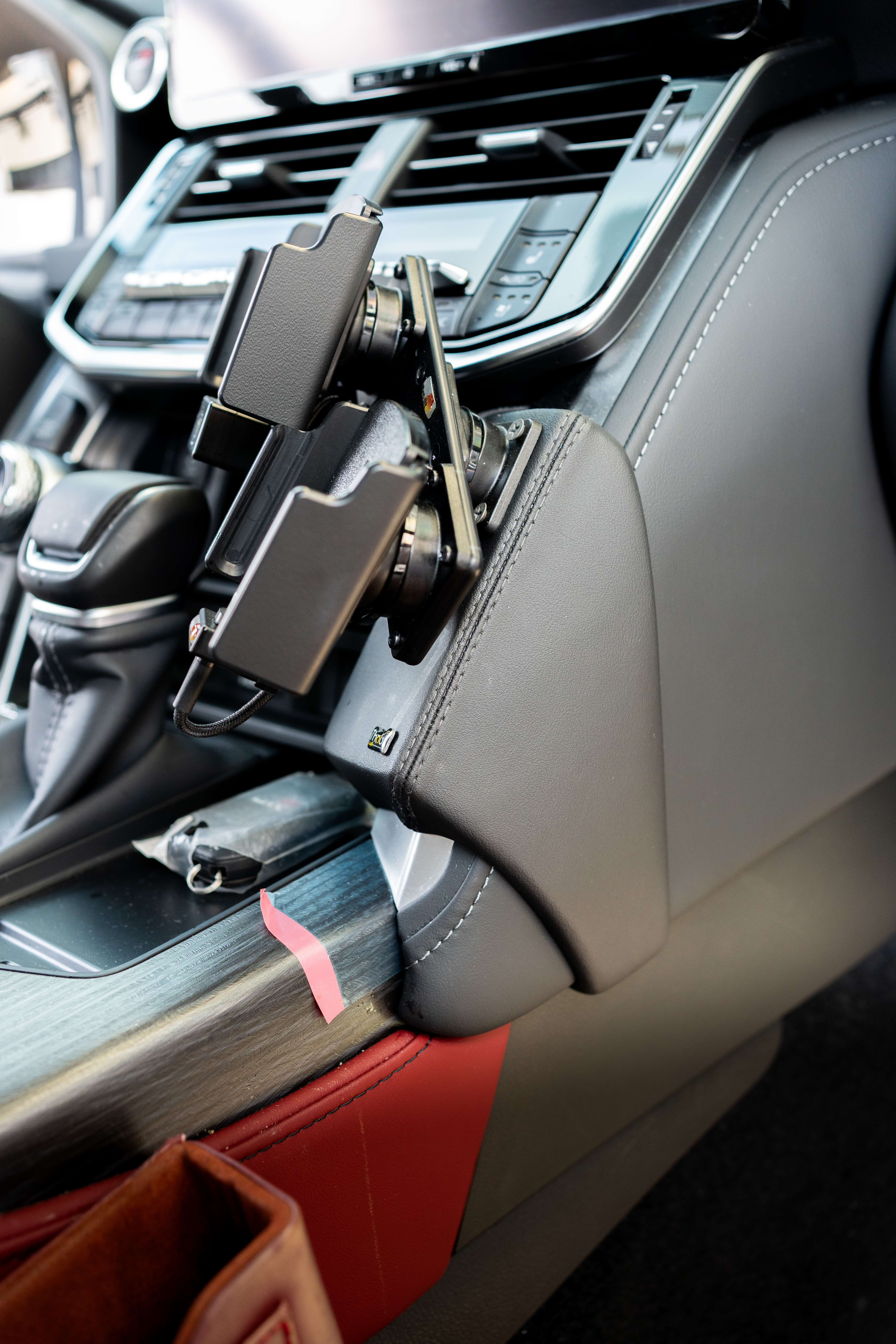 قاعدة جلد مصنوعة من الألياف الزجاجية، تم تغليفها بجلد عالي الجودة تمت خياطته باناقة ليكون تصميم فاخر و جميل مع ملمس فخم عالي الجودة. تم تصميمها و تفصيلها لتكون ملائمة لديكور و داخلية السيارة، و تتوفر بألوان مختلفة على حسب لون داخلية السيارة ، قابلة للتركيب و الفك دون الإضرار بالجزء الداخلي لديكور السيارة