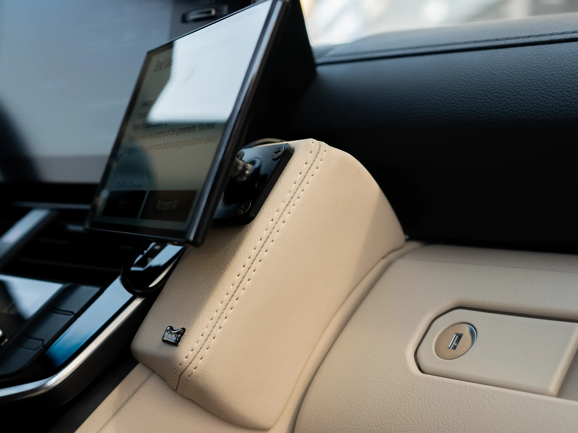 قاعدة جلد مصنوعة من الألياف الزجاجية، تم تغليفها بجلد عالي الجودة تمت خياطته باناقة ليكون تصميم فاخر و جميل مع ملمس فخم عالي الجودة. تم تصميمها و تفصيلها لتكون ملائمة لديكور و داخلية السيارة، و تتوفر بألوان مختلفة على حسب لون داخلية السيارة ، قابلة للتركيب و الفك دون الإضرار بالجزء الداخلي لديكور السيارة