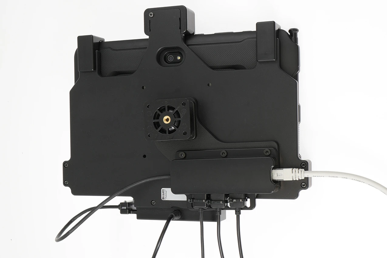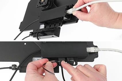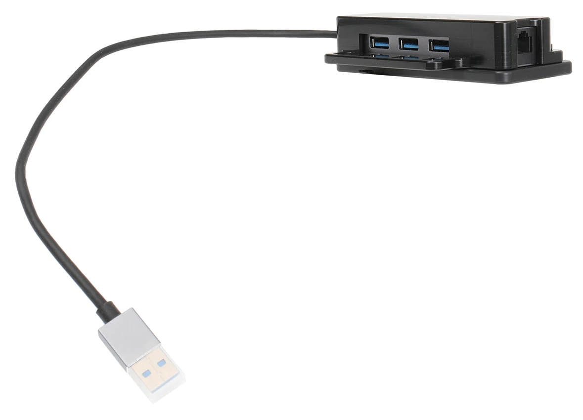 This mount with the Hub included is the perfect choice for you when you want three USB-A ports with USB-Host function and one Ethernet port connected to your holder with only one USB-Host. Only connect the cable to the USB-A port on the active holder.