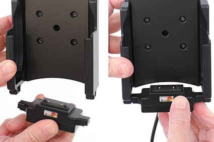 The easy-switching system enables you to upgrade the holder only, and keep the installed cables. This saves you a lot of time and money! When upgrading to a new device, you do not need to make a full installation. You simply disconnect the holder from the charging cable via the Molex 6-pin quick connector, and then connect the new holder. Same goes for maintenance in case of warranty or damage. The switch is done in a few seconds.