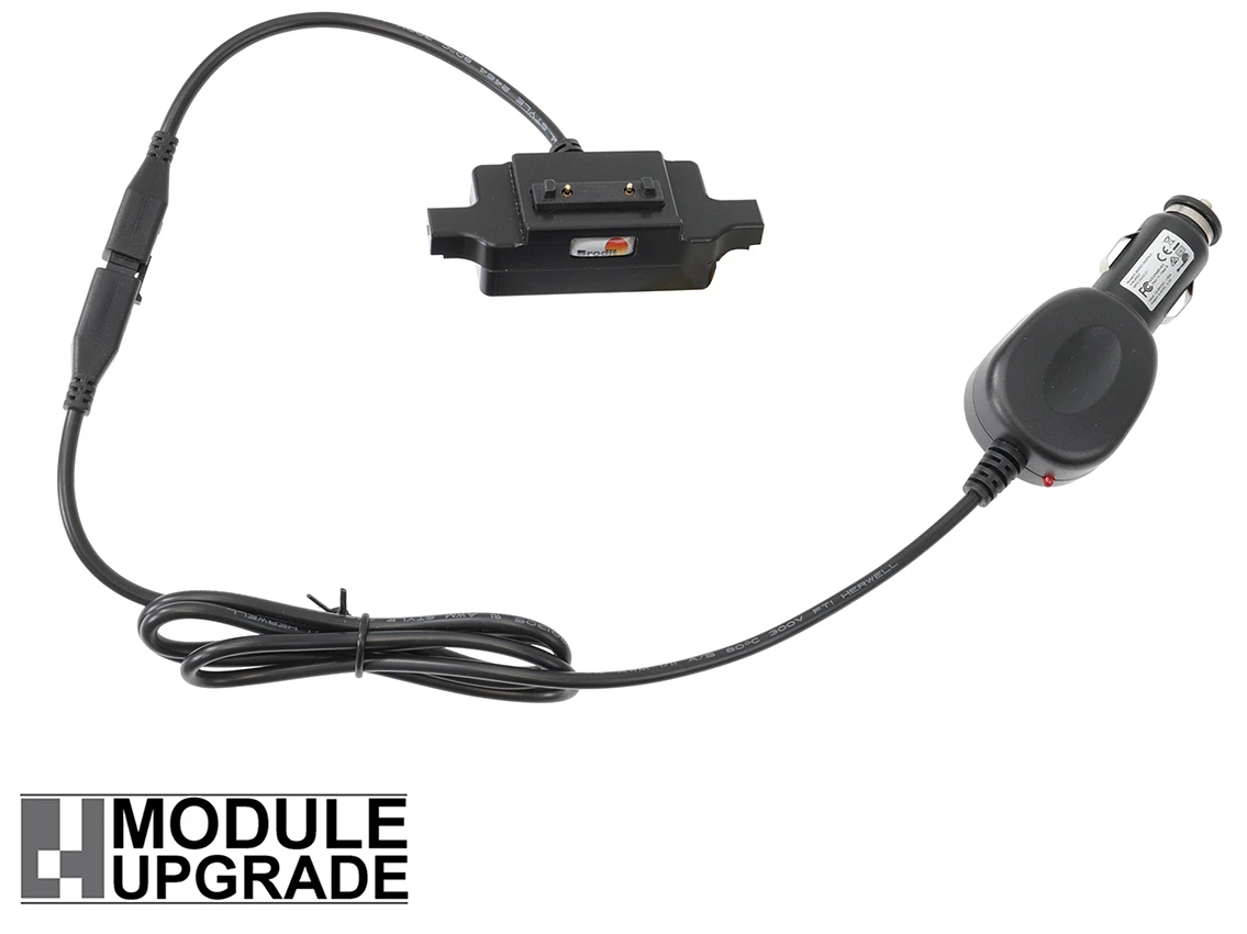 Charging module with cig-plug cable, easy-switching system. Connect your device to a charging feature while driving, and you will always have a freshly charged battery The product is compatible with Module Upgrade holders for this device, so you can upgrade such a holder with charging if desired. Charging via pogo pins.