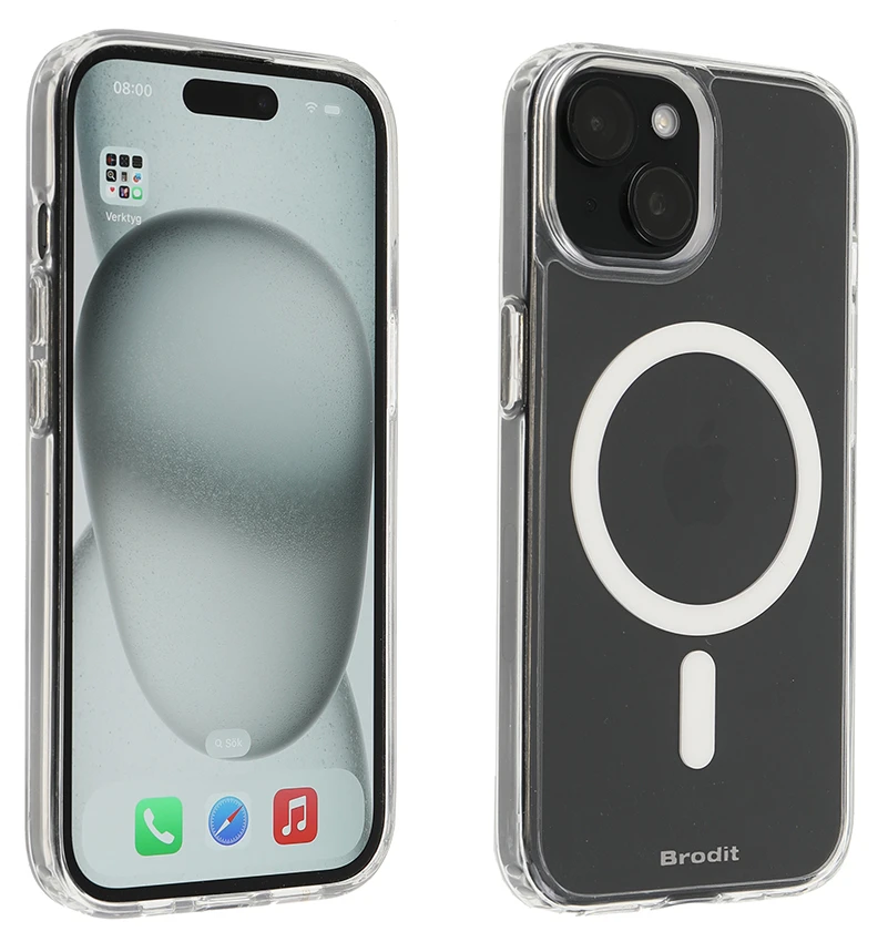 A stylish and modern case with a soft TPU edge and a hard back that provides increased protection for your phone. The soft, raised edges on the front and around the camera give your phone very good protection. The built-in magnetic ring allows it to be used with a wireless magnetic charger. The Brodit phone case is compatible with Apple MagSafe accessories.
