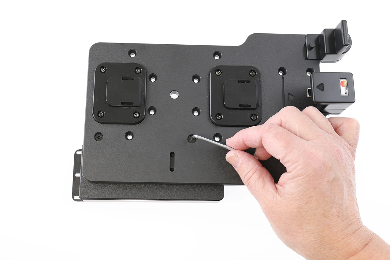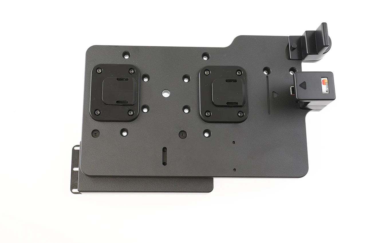 The mount is designed with a cover featuring cable retention, preventing cables from shaking loose or coming unplugged during operation. Attaching it is a breeze – specifically crafted to easily integrate with existing holders by using the included fastener pack, requiring no tools.