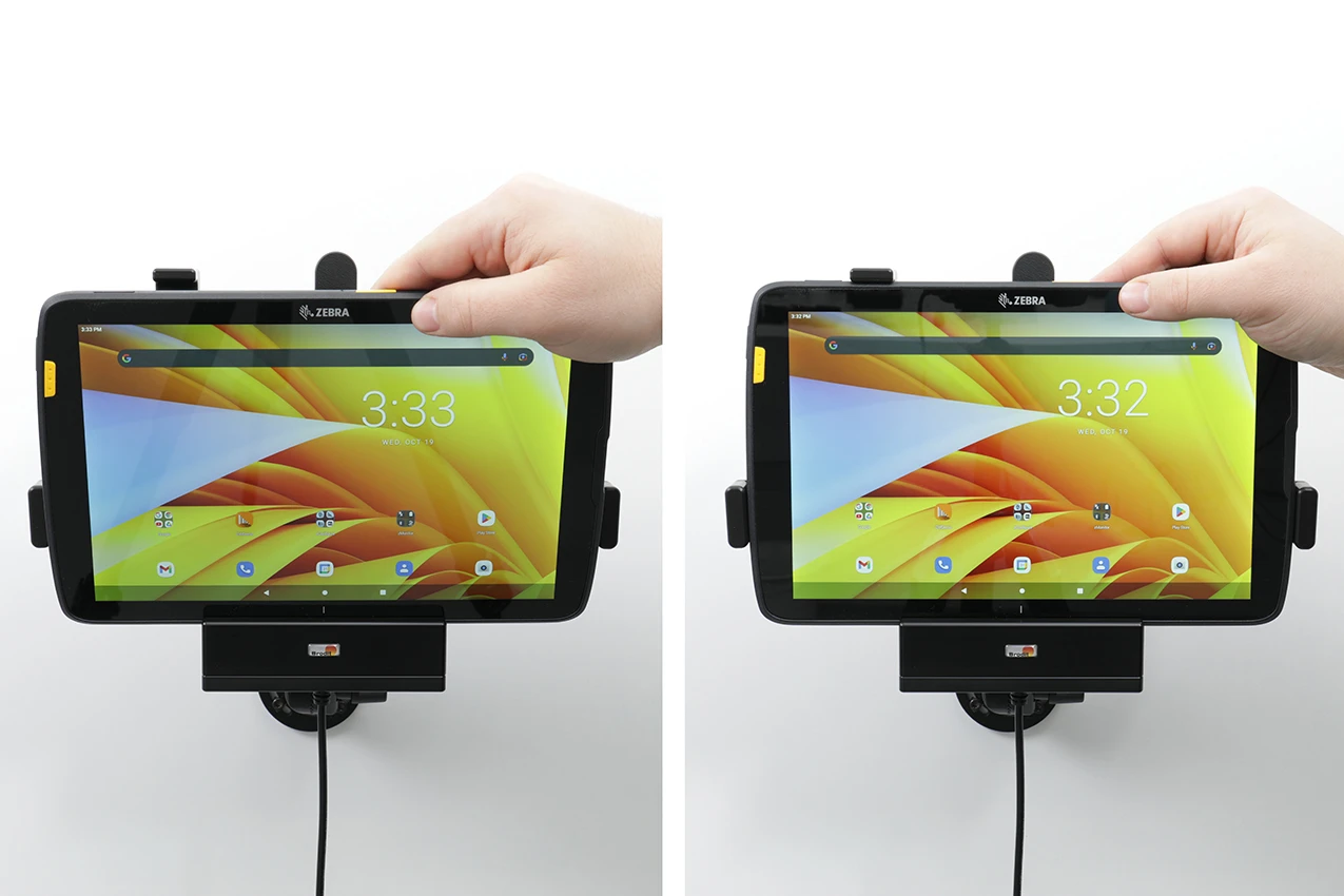 The Zebra ET4x series Module Upgrade Cradles from Brodit are designed to withstand frequent wear and tear in professional every day use, providing a more productive working day and better working environment with your device within sight and reach. Safe, efficient and convenient!
