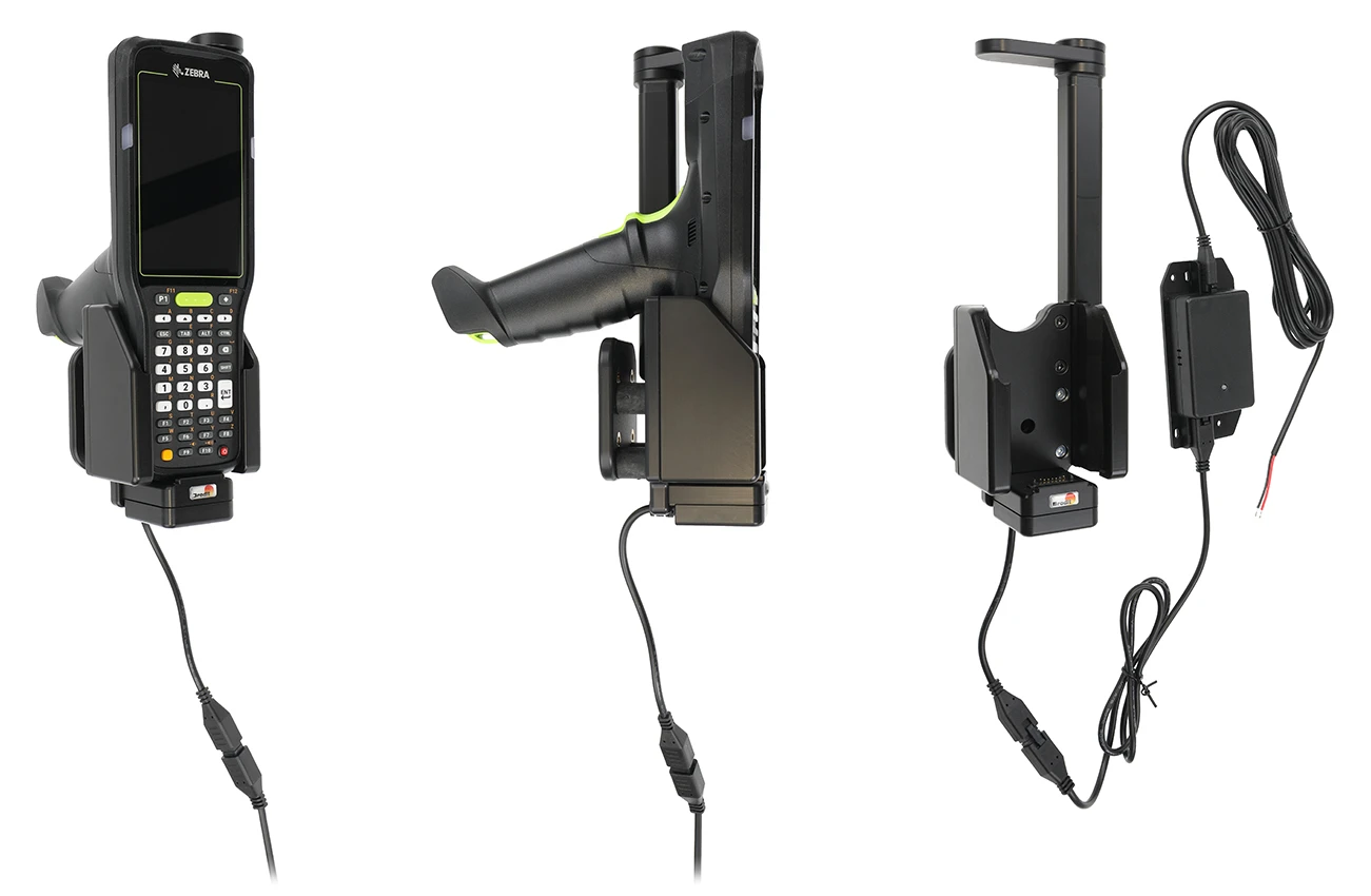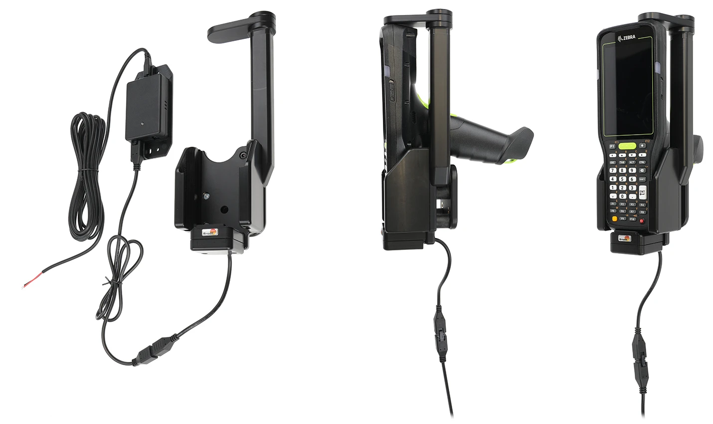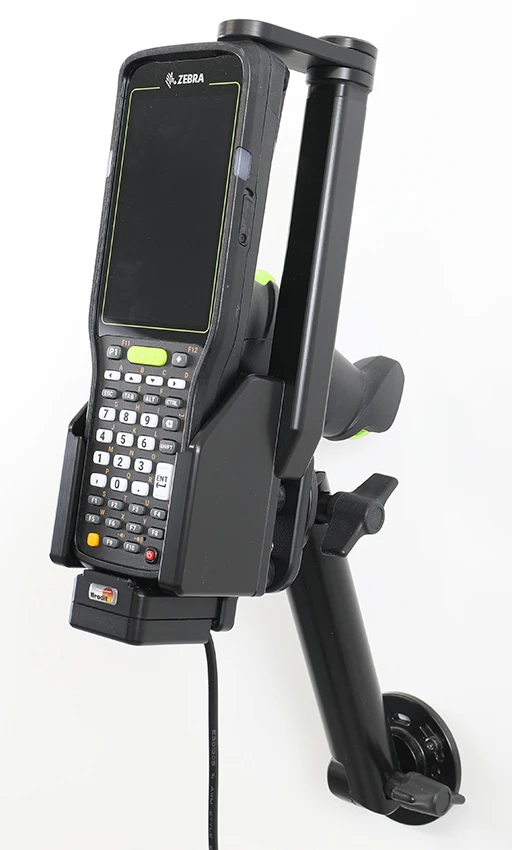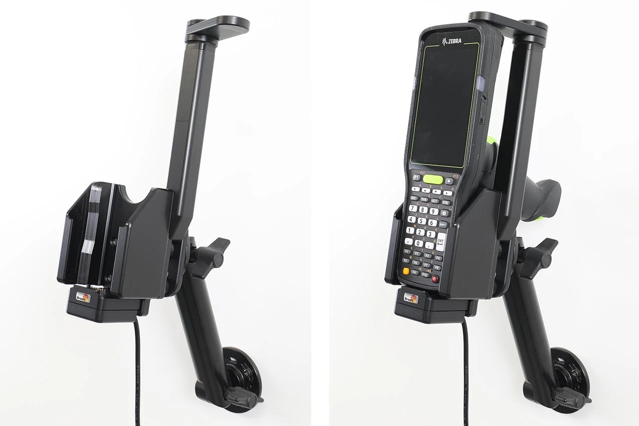 The choice for you who want to have you PDA firmly in place, properly attached and still within easy reach. The holder has a strong, robust design to withstand rough handling in professional use. The swiveling top part keeps your device extra securely in place in the holder, it "locks" the device in the holder so that it can not shake the least. It is easy to place the PDA in the holder, and to take it with you when leaving the vehicle. The charging device is automatically connected when you put the device in the holder. The rubber vibration dampeners help to eliminate vibrations when mounted onto a vehicle operating in rough road conditions.