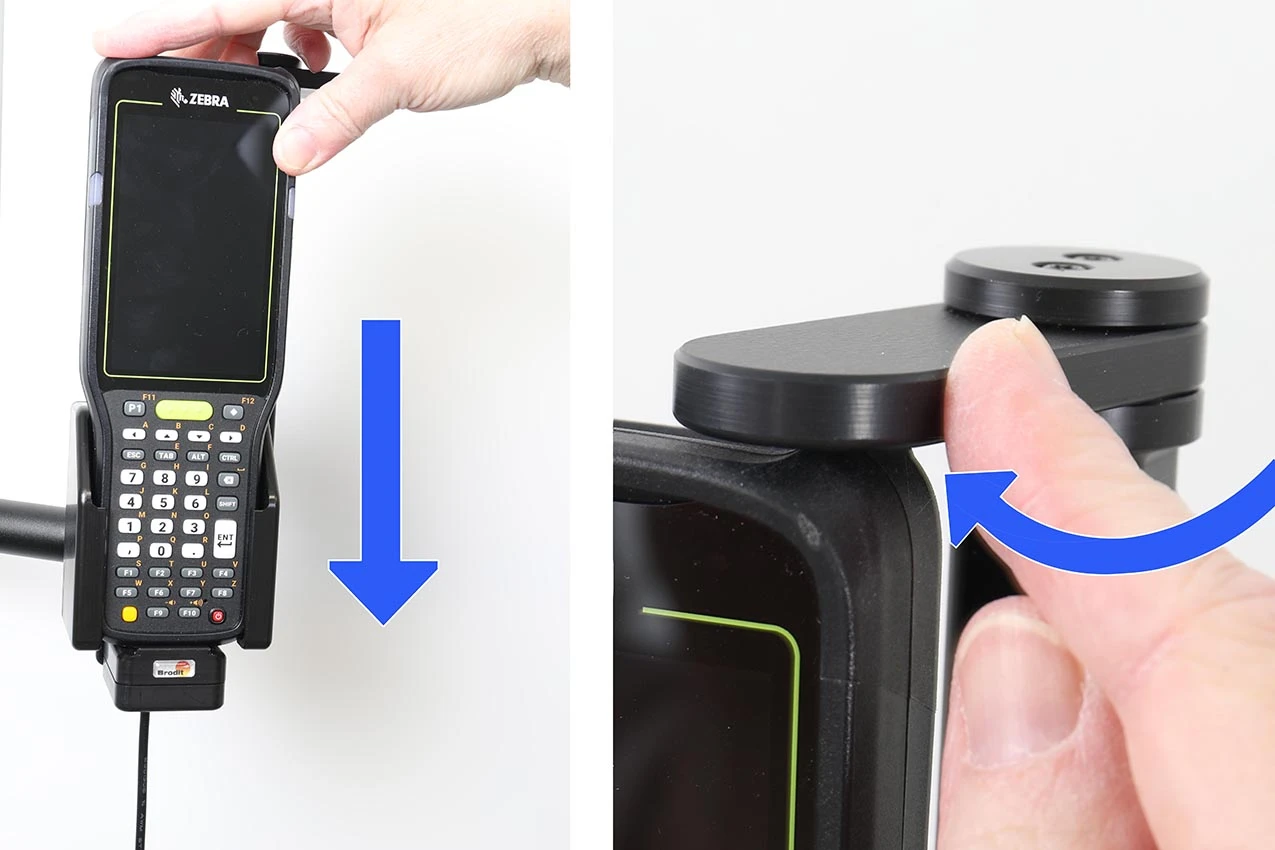 The choice for you who want to have you PDA firmly in place, properly attached and still within easy reach. The holder has a strong, robust design to withstand rough handling in professional use. The swiveling top part keeps your device extra securely in place in the holder, it "locks" the device in the holder so that it can not shake the least. It is easy to place the PDA in the holder, and to take it with you when leaving the vehicle. The charging device is automatically connected when you put the device in the holder.