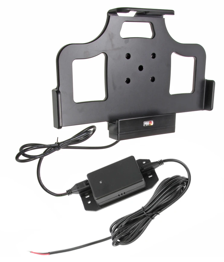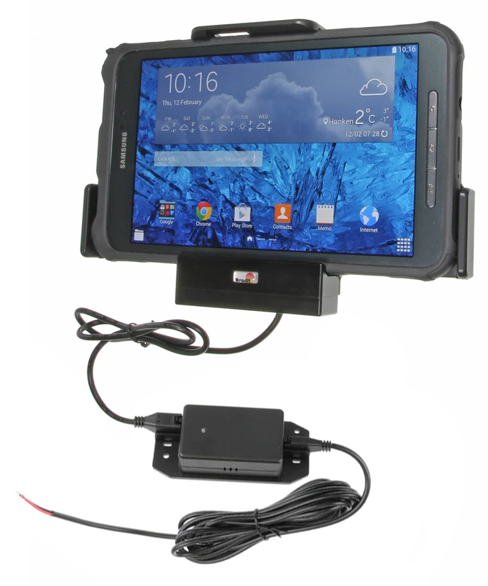 Use an active holder for your Galaxy Tab Active while driving and you will always have a freshly charged battery! The active holder is to be connected inside the dashboard. It provides a discreet and neat installation without any cables hanging over the interior. Safe and convenient! 12/24 Volt. The product is E-approved. Connect the power cable with a 2 A fuse. 2,5A charger. Charging via pogo plug. Professional installation recommended.