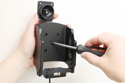 12/24 Volt. The product is E-approved. Connect the power cable with a 2 A fuse. 2,7 A charger. Professional installation recommended. The holder is attached onto a tilt swivel so you can easily adjust your device in order to avoid light reflection. Attach onto a ProClip Mounting Platform.