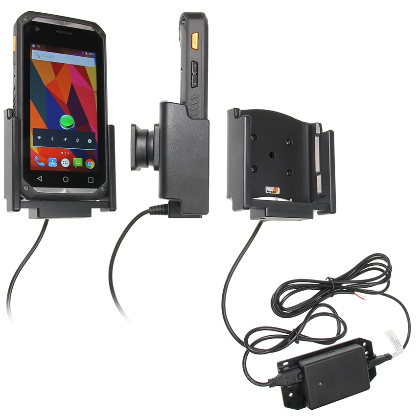 12/24 Volt. The product is E-approved. Connect the power cable with a 2 A fuse. 2 A charger. Professional installation recommended. The holder is attached onto a tilt swivel so you can easily adjust your device in order to avoid light reflection. Attach onto a ProClip Mounting Platform.