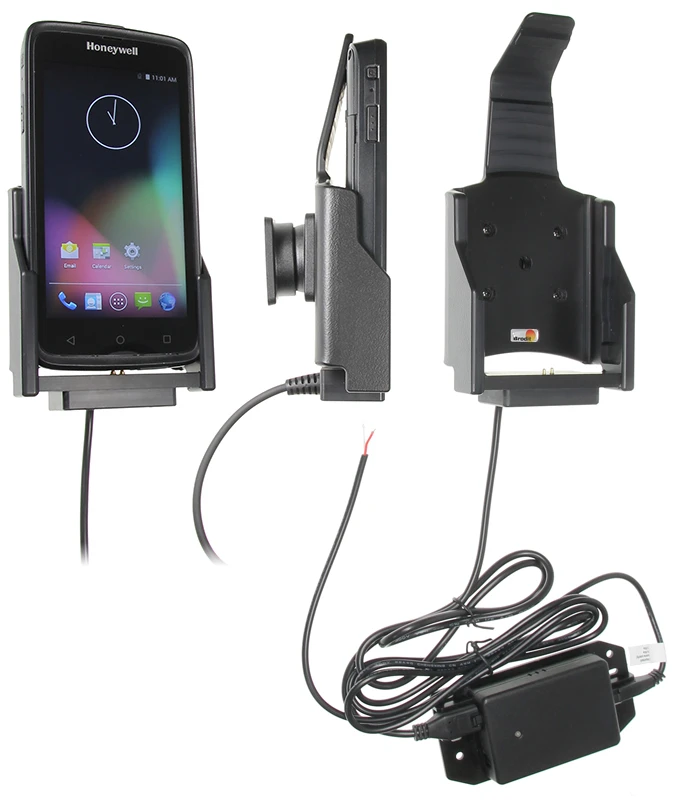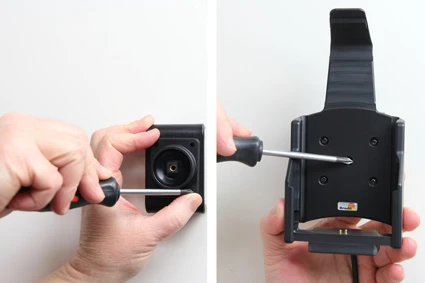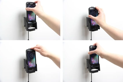 An active holder which is to be connected inside the dashboard, this gives a discreet, neat installation without cables hanging over the interior! Fits for device with or without handstrap.