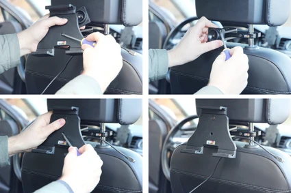 This adjustable holder is crash tested according to standard for car seats (ECE R17). The crash test applies for a tablet that weighs 490 g. The tests have been performed on one seat with invisible headrest pins (type Volvo etc.) and one seat with visible headrest pins (type Ford etc.) in the forward and rearward directions. The adjustable holder keeps the tablet in place during all executed tests.