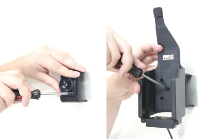 The holder is attached onto a tilt swivel and can be adjusted in order to avoid light reflection. The holder fits devices both with standard and extended battery. Attach onto ProClip Mounting Platform.