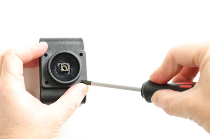 Place the holder over the attaching plate so the screw fits in the hole in the tilt swivel. Tighten the screw until the holder is firmly in place, but still can be adjusted.