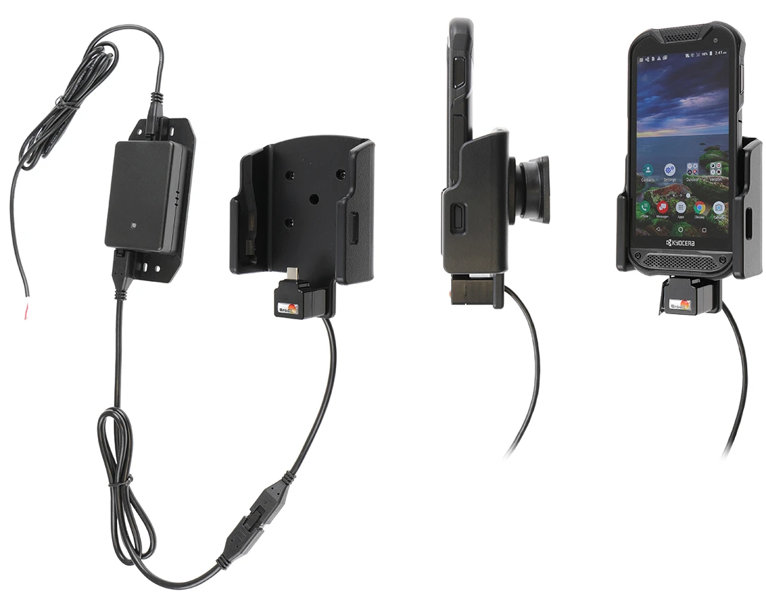 An active holder which is to be connected inside the dashboard, this gives a discreet, neat installation without cables hanging over the interior!