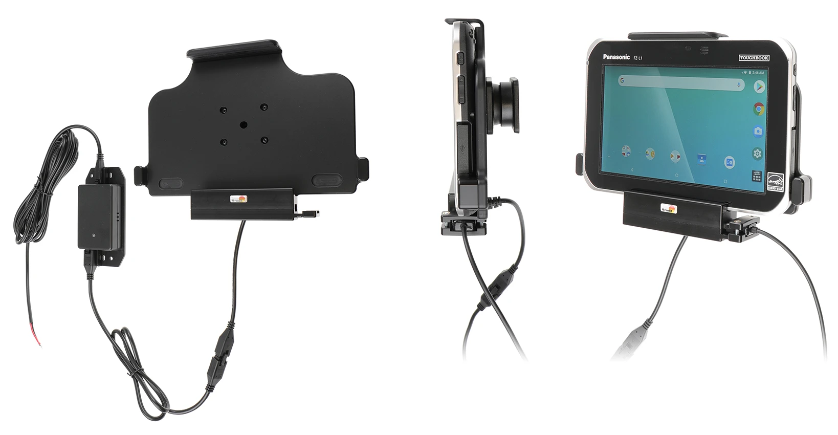 An installation of a tablet onto a vehicle’s dashboard is always done on the customer’s own responsibility. Brodit recommends to use tablets on the car’s headrest, installed onto a Brodit headrest mount.