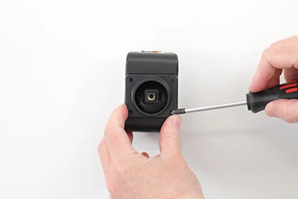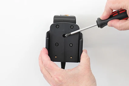 Connect the White wire to a Negative Ground connection of the vehicle or the vehicle chassis. 2. Connect the Red wire to a 12/24 Volt power supply in the vehicle that is controlled by the ignition switch of the vehicle. How to mount the holder: 1. Loosen the screw in the center of the holder so you can remove the tilt swivel attaching plate on the back. 2. Place the attaching plate onto the desired position. Screw the attaching plate into place with the enclosed screws. 3. Place the holder over the attaching plate so the screw fits in the hole in the tilt swivel. Screw a few turns on the screw, just so the thread starts to pull. Pull the holder toward you and hold it slightly tensed, in the same time tighten the screw so the holder is pulled toward the tilt swivel. Tighten the screw firm at first, then loosen it a bit so the holder is firmly in place, but still can be adjusted. 4. The holder is in place.