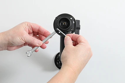 Loosen the screw in the center of the holder so you can remove the tilt swivel attaching plate on the back.