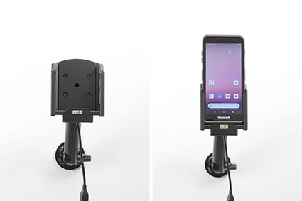 The holder is equipped with a tilt swivel so you can easily adjust the angle for better viewing, or switch between portrait and landscape mode. Tilts 17° and swivels 360°. Mounting plate 42x50 mm with 4 mm AMPS-holes. Made of high grade black ABS/Acetal plastic. Made in Sweden. Connect the power cable with a 3A fuse. Professional installation recommended. Attach onto a ProClip Mounting Platform or a Pedestal Mount.