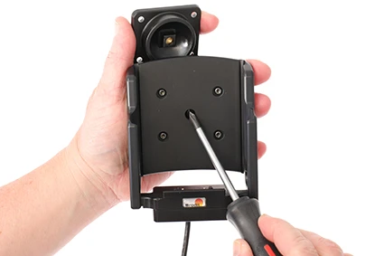 The holder is equipped with a tilt swivel so you can easily adjust the angle for better viewing, or switch between portrait and landscape mode. Tilts 17° and swivels 360°. Mounting plate 42x50 mm with 4 mm AMPS-holes. Made of high grade black ABS/Acetal plastic. Made in Sweden. Connect the power cable with a 3A fuse. Professional installation recommended. Attach onto a ProClip Mounting Platform or a Pedestal Mount.