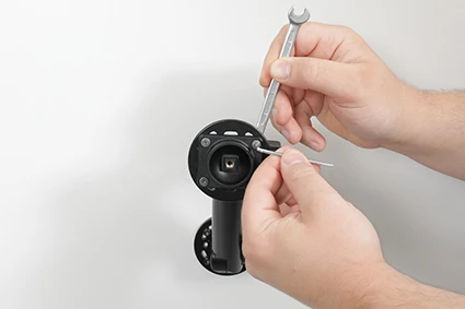 Place the holder over the attaching plate so the screw fits in the hole in the tilt swivel. Tighten the screw until the holder is firmly in place, but still can be adjusted.