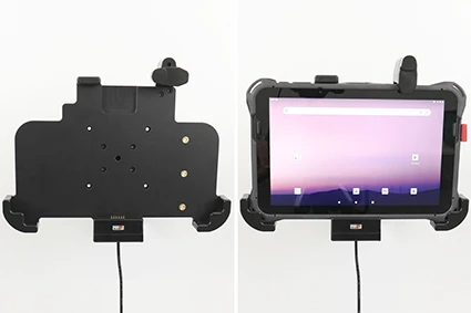 The active holder is to be connected inside the dashboard. It provides a discreet and neat installation without any cables hanging over the interior. Safe and convenient! 12/24 Volt. The product is E-approved. Connect the power cable with a 2A fuse. 2,5A charger. Charging via pogo plug. Professional installation recommended.