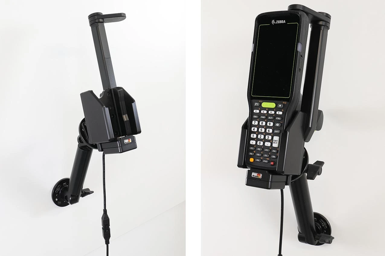 The choice for you who want to have you PDA firmly in place, properly attached and still within easy reach. The holder has a strong, robust design to withstand rough handling in professional use. The swiveling top part keeps your device extra securely in place in the holder, it "locks" the device in the holder so that it can not shake the least. It is easy to place the PDA in the holder, and to take it with you when leaving the vehicle. The charging device is automatically connected when you put the device in the holder.