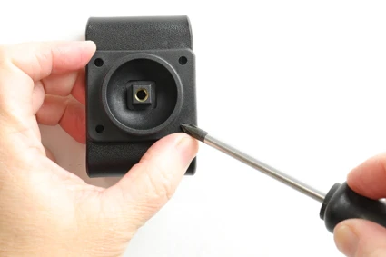 Connect the White wire to a Negative Ground connection of the vehicle or the vehicle chassis. 2. Connect the Red wire to a 12 Volt power supply in the vehicle that is controlled by the ignition switch of the vehicle. Installation of the holder: 1. Loosen the screw in the center of the holder so you can remove the tilt swivel attaching plate on the back. 2. Place the attaching plate onto the desired position. Screw the attaching plate into place with the enclosed screws. Place the holder over the attaching plate so the screw fits in the hole in the tilt swivel. 3. Screw a few turns on the screw, just so the thread starts to pull. Pull the holder toward you and hold it slightly tensed, in the same time tighten the screw so the holder is pulled toward the tilt swivel. Tighten the screw until the holder is firmly in place, but still can be adjusted. 4. The holder is in place.