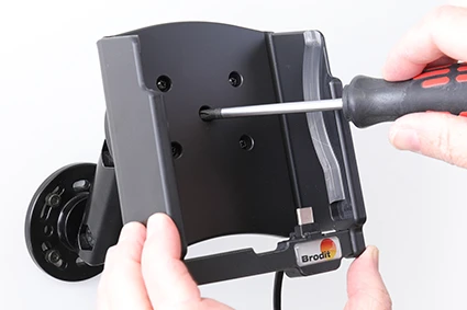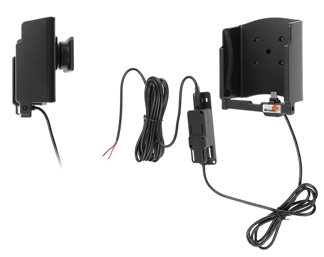 12/24 Volt. The product is E-approved. 2A charger. Professional installation recommended. The holder is attached onto a tilt swivel so you can easily adjust your device in order to avoid light reflection. Attach onto a ProClip Mounting Platform.