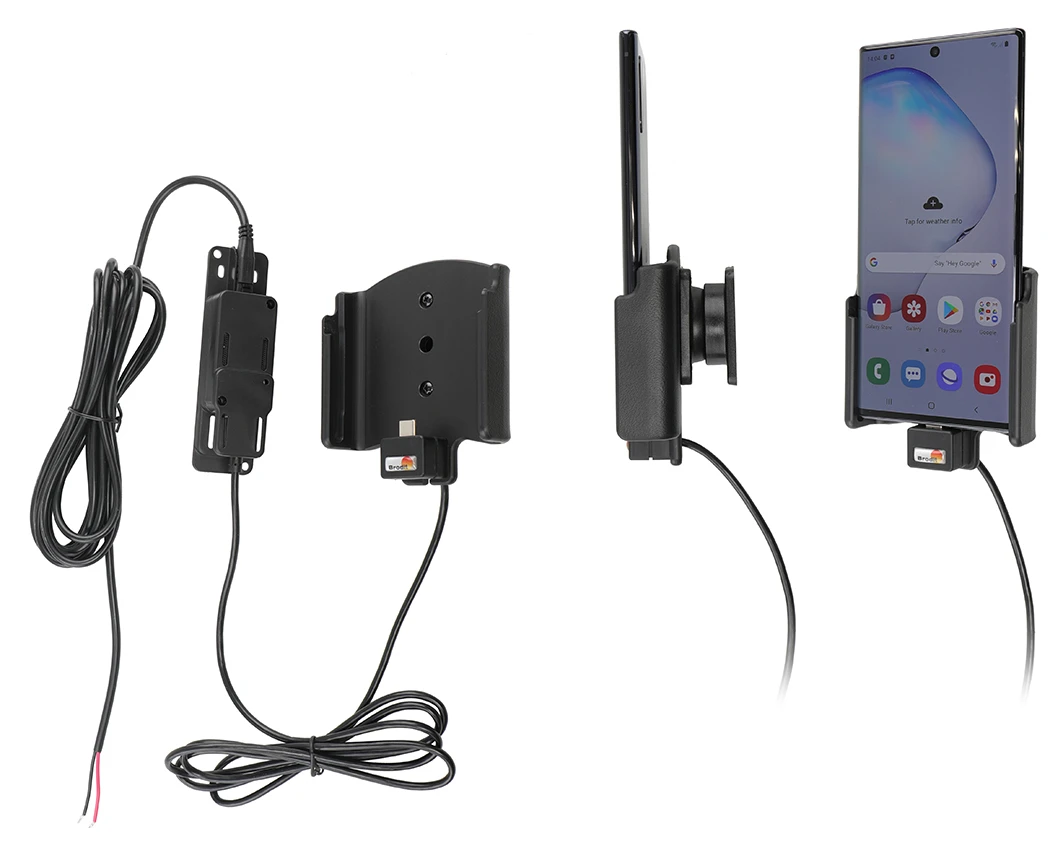 The holder is equipped with a tilt swivel so you can easily adjust the angle for better viewing, or switch between portrait and landscape mode. Tilts 17° and swivels 360°. Mounting plate 42x50 mm with 4 mm AMPS-holes. Made of high grade black ABS/Acetal plastic. Made in Sweden. Connect the power cable with a 2A fuse. Professional installation recommended. Attach onto a ProClip mounting platform.