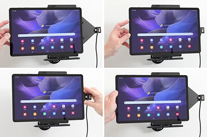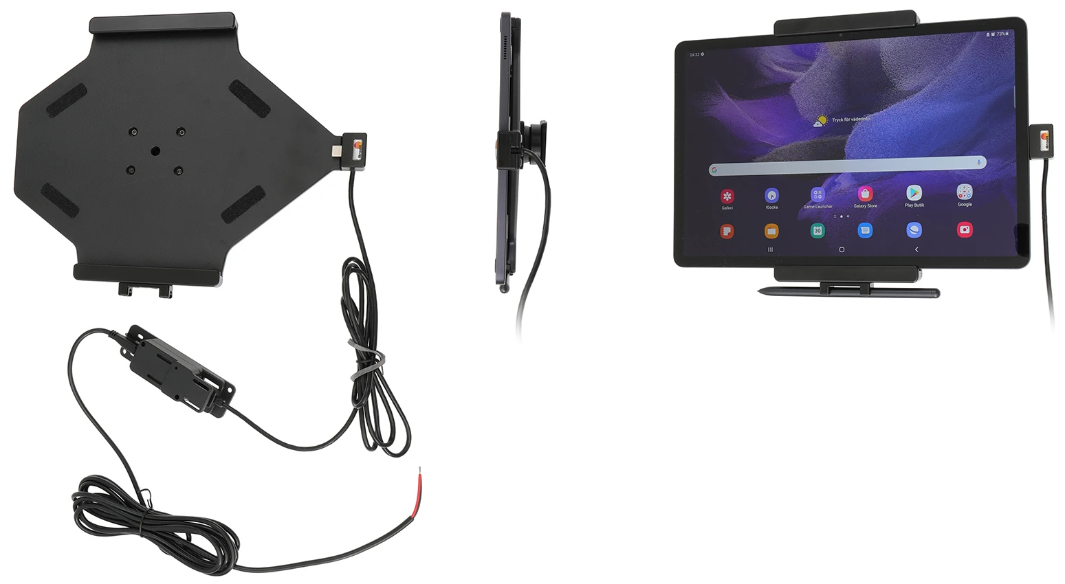 An installation of a tablet onto a vehicle’s dashboard is always done on the customer’s own responsibility. Brodit recommends to use tablets on the car’s headrest, installed onto a Brodit headrest mount.