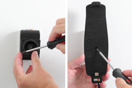 The holder has a perfect fit. It is easy to put the device into the holder, and just as easy to take it with you when leaving the vehicle. The holder is equipped with a tilt swivel so you can adjust the angle of your device in order to avoid light reflection on the screen. You can tilt the holder 17° in each direction. Attach onto ProClip Mounting Platform.