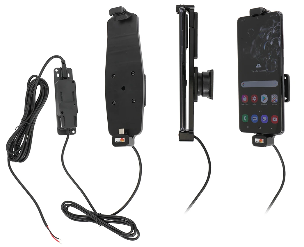 Use an active holder for your device on the road and you will always have a freshly charged battery! In addition, you will always have your device within easy sight and reach. Safe, comfortable and convenient! For fixed installation. The holder is to be connected inside the dashboard, providing an elegant installation without any cables hanging over the interior. The charging box has two USB ports: QC 3.0A + 2.4A. You have full access to the camera and all buttons when the device is in the holder. Fits devices with skin. The top part of the holder is adjustable and adapts to the height of your phone.