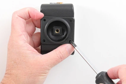Loosen the screw in the center of the holder so you can remove the tilt swivel attaching plate on the back.