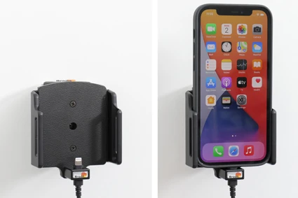 With your mobile in a holder while driving you will always have it within easy sight and reach! And with an active holder you always have a charged battery when leaving the car. Neat, discreet and convenient! For fixed installation. The holder is to be connected inside the dashboard, providing an elegant installation without any cables hanging over the interior. The charging box has two USB ports: QC 3.0A + 2.4A. It is easy to slide the device in place in the holder so it connects to the charging, and to take it out of the holder when leaving the vehicle.