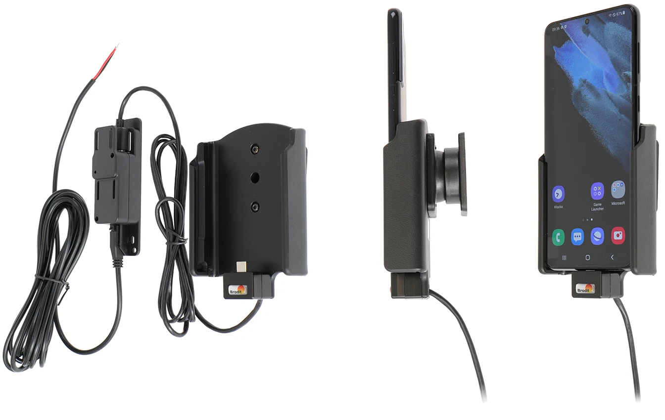 Keep your phone's battery fully charged in an active holder, always within easy sight and reach! Neat, discreet and convenient. Custom made with a perfect, firm fit. For fixed installation. The holder is to be connected inside the dashboard, providing an elegant installation without any cables hanging over the interior. The charging box has two USB-A ports: QC 3.0A + 2.4A. You have full access to the camera and all buttons when the device is in the holder. It is easy to slide the phone in place in the holder so it connects to the charging, and to take it out of the holder when leaving the vehicle.