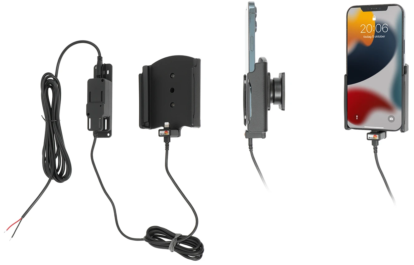 Keep your phone's battery fully charged in an active holder, always within easy sight and reach! Neat, discreet and convenient. Custom made with a perfect, firm fit. For fixed installation. The holder is to be connected inside the dashboard, providing an elegant installation without any cables hanging over the interior. The charging box has two USB ports: QC 3.0A + 2.4A. You have full access to the camera and all buttons when the device is in the holder. It is easy to slide the phone in place in the holder so it connects to the charging, and to take it out of the holder when leaving the vehicle.