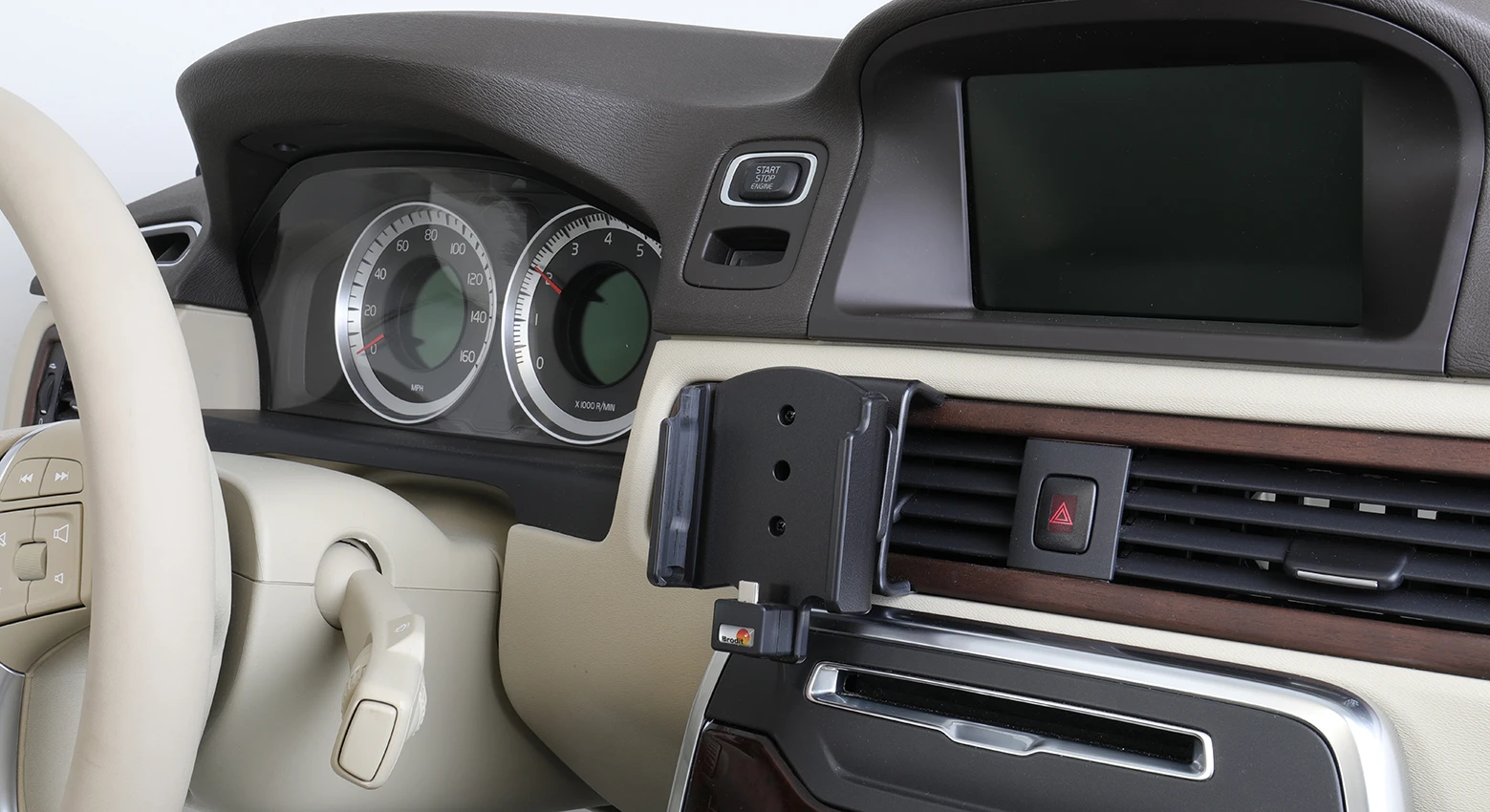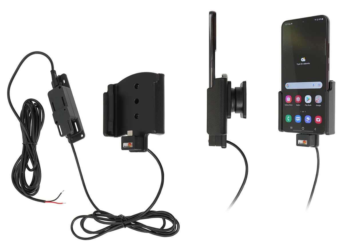 Keep your phone's battery fully charged in an active holder, always within easy sight and reach! Neat, discreet and convenient. Custom made with a perfect, firm fit. For fixed installation. The holder is to be connected inside the dashboard, providing an elegant installation without any cables hanging over the interior. The charging box has two USB-A ports: QC 3.0A + 2.4A. You have full access to the camera and all buttons when the device is in the holder. It is easy to slide the phone in place in the holder so it connects to the charging, and to take it out of the holder when leaving the vehicle.