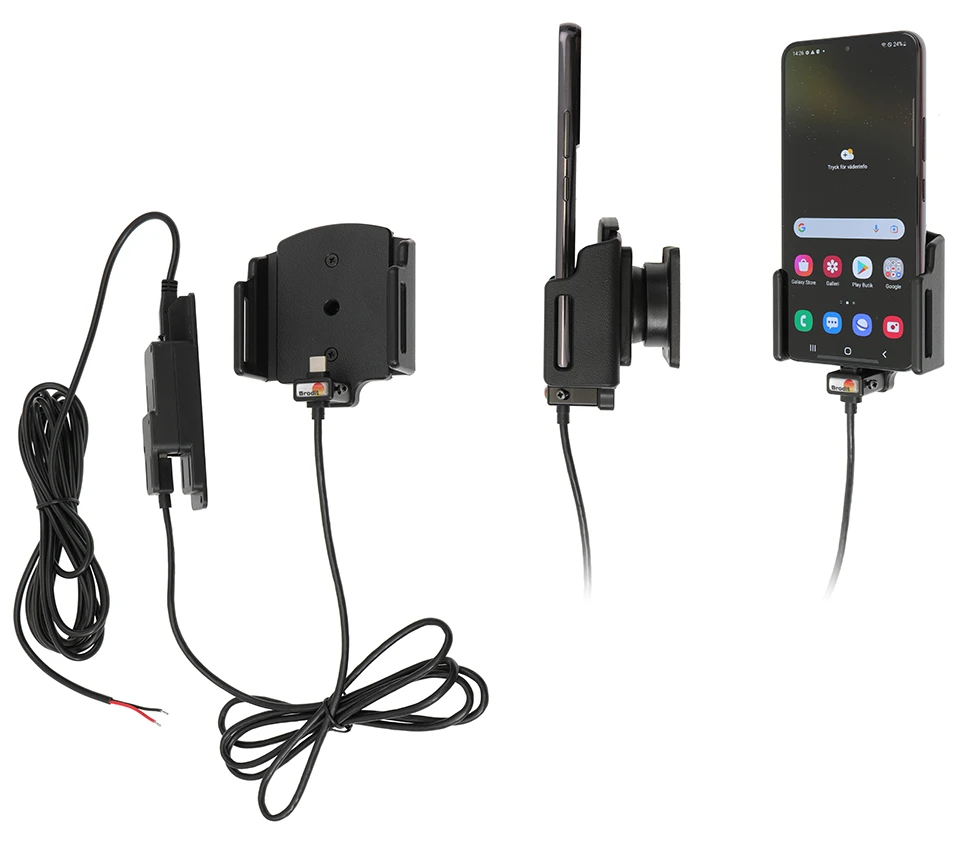 With your mobile in a holder while driving you will always have it within easy sight and reach! And with an active holder you always have a charged battery when leaving the car. Neat, discreet and convenient! For fixed installation. The holder is to be connected inside the dashboard, providing an elegant installation without any cables hanging over the interior. The charging box has two USB ports: QC 3.0A + 2.4A. It is easy to slide the device in place in the holder so it connects to the charging, and to take it out of the holder when leaving the vehicle.