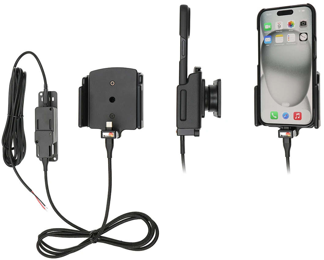 With your mobile in a holder while driving you will always have it within easy sight and reach! And with an active holder you always have a charged battery when leaving the car. Neat, discreet and convenient! For fixed installation. The holder is to be connected inside the dashboard, providing an elegant installation without any cables hanging over the interior. The charging box has two USB ports: QC 3.0A + 2.4A. It is easy to slide the device in place in the holder so it connects to the charging, and to take it out of the holder when leaving the vehicle.
