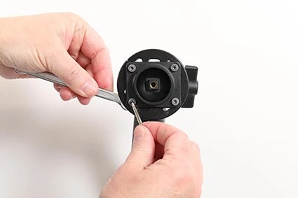 Place the holder over the attaching plate so the screw fits in the hole in the tilt swivel and screw it into place. Tighten the screw so the holder is firmly in place, but still can be adjusted.