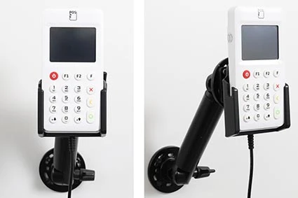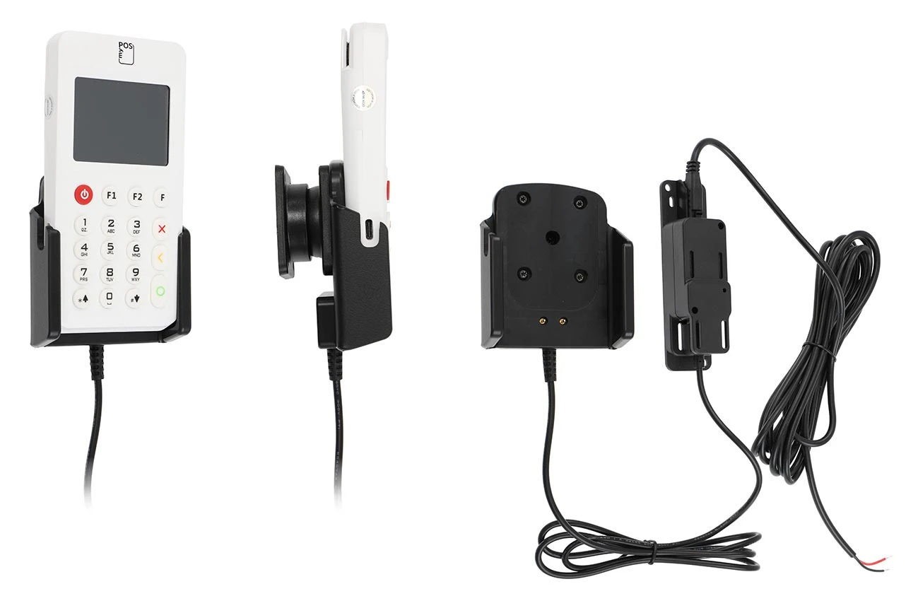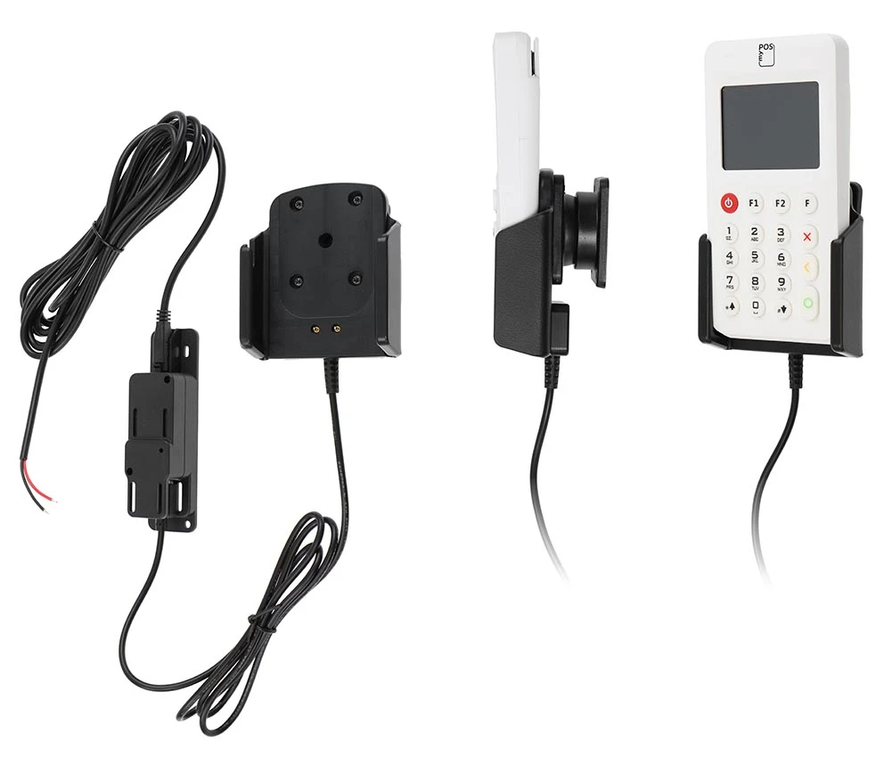 Keep your payment terminal´s battery fully charged in an active holder, always within easy sight and reach! Neat, discreet and convenient. Custom made with a perfect, firm fit. For fixed installation. The holder is to be connected inside the dashboard, providing an elegant installation without any cables hanging over the interior. The charging box has two USB A ports: QC 3.0A + 2.4A. It is easy to slide the payment terminal in place in the holder so it connects to the charging, and to take it out of the holder when leaving the vehicle.