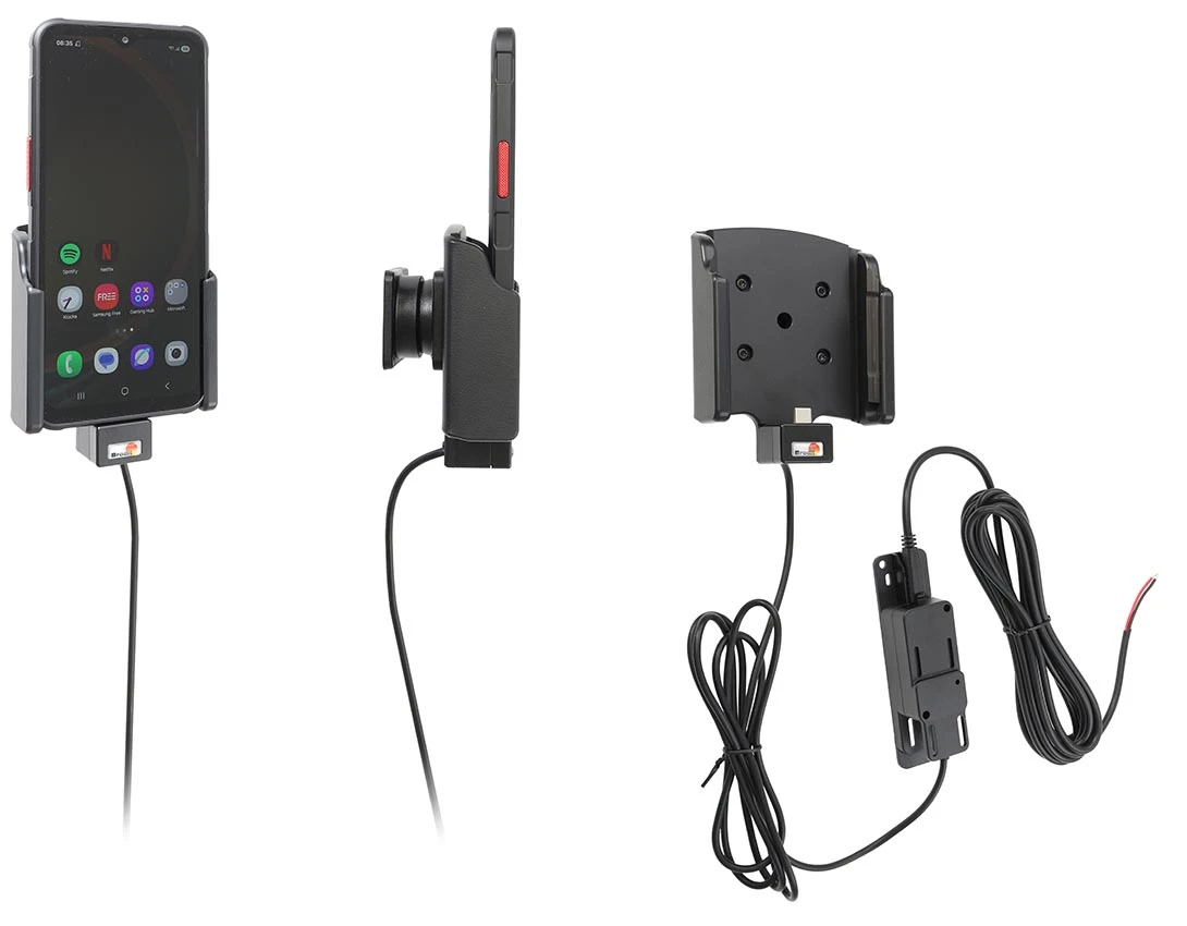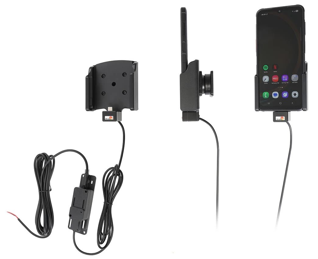 Charging via USB-C connector enables for quick charging. The charging box has two USB ports: Type-A (free for power supply of additional device) and Type-C (connected to the holder). 12/24Volt.