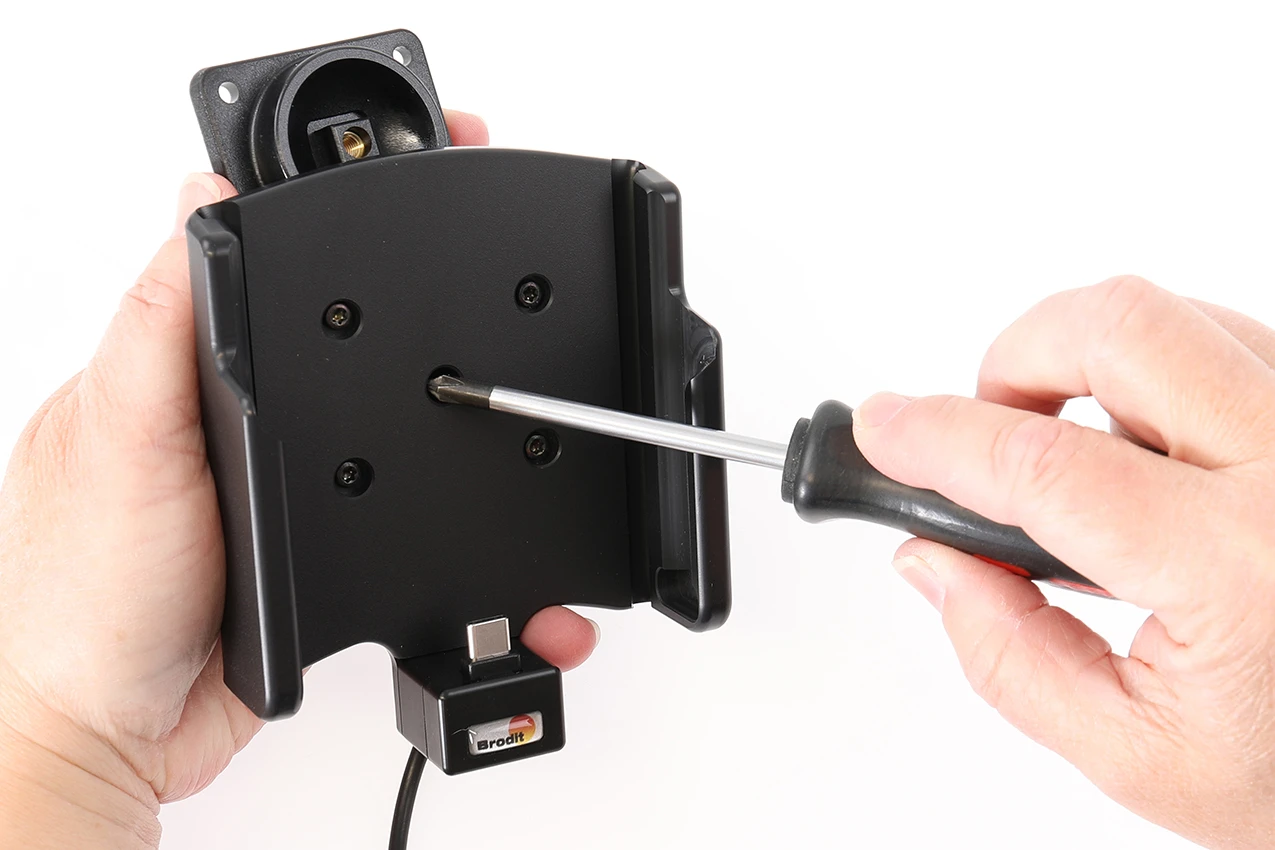 The holder is equipped with a tilt swivel so you can easily adjust the angle for better viewing, or switch between portrait and landscape mode. Tilts 17° and swivels 360°. Mounting plate 42x50 mm with 4 mm AMPS-holes. Made of high grade black ABS/Acetal plastic. Made in Sweden. For easy and optimal installation, attach the holder onto a custom ProClip Vehicle Mount, a Pedestal Mount or attach it directly to any surface.