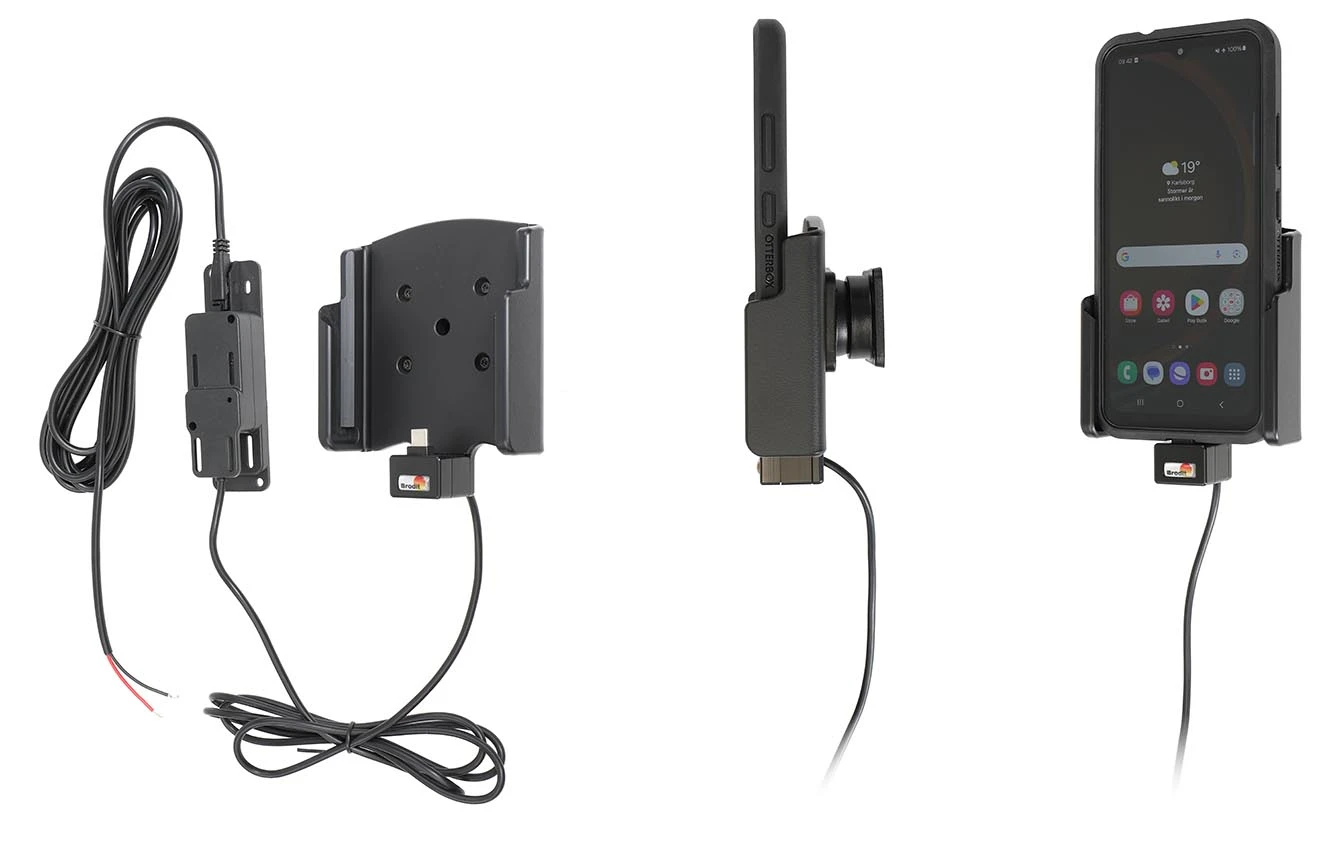 Charging via USB-C connector enables for quick charging. The charging box has two USB ports: Type-A (free for power supply of additional device) and Type-C (connected to the holder). 12/24Volt.