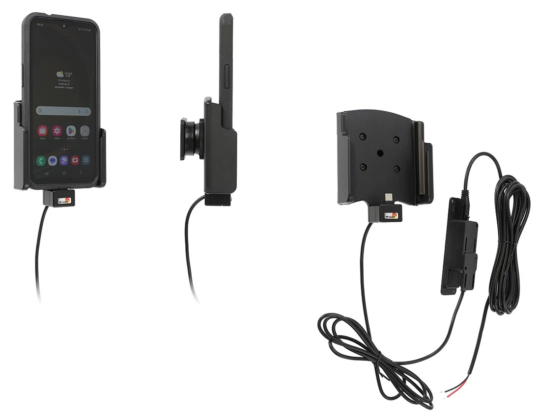Charging holder with hard-wired power supply for a discreet, neat installation without cables hanging over the interior! Keeps your battery fully charged at all times and your device in an upright position for better reception. Provides for safer driving when viewing, accessing and operating your device in your vehicle. Custom made design with a perfect, firm fit for bare devices (not in case/skin/boot). Easy dock/undock your device with one hand.