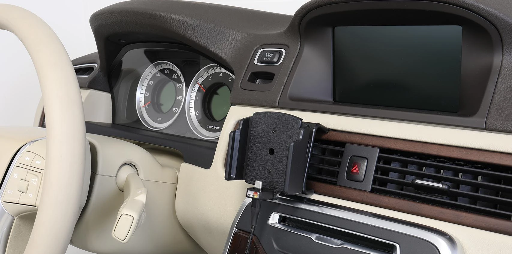 Before using the holder you need to set the holder's width so it suits your device, then your phone is held firmly in place in an upright position for maximum cellular reception. The holder has a neat and discreet design which blends well with the vehicle's interior. Attach onto ProClip Mounting Platform.