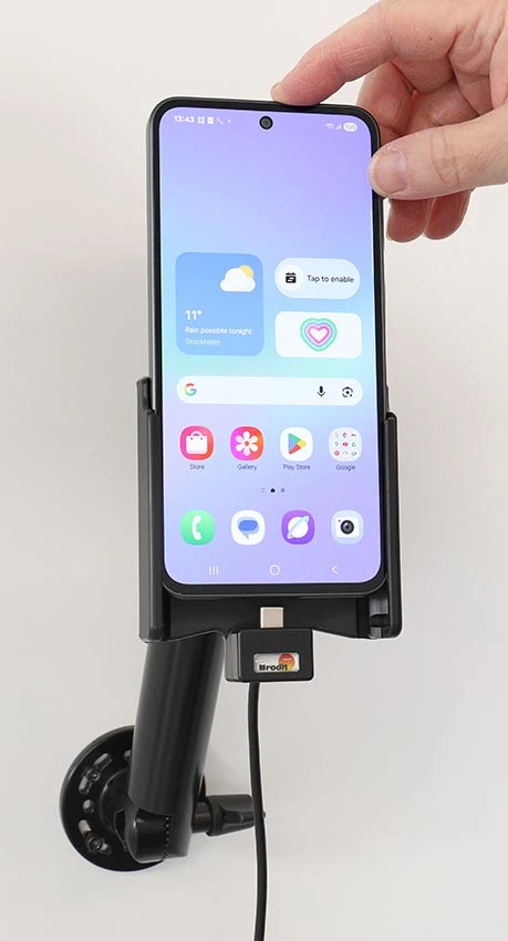 The holder is equipped with a tilt swivel so you can easily adjust the angle for better viewing, or switch between portrait and landscape mode. Tilts 17° and swivels 360°. Mounting plate 42x50 mm with 4 mm AMPS-holes. Made of high grade black ABS/Acetal plastic. Made in Sweden. For easy and optimal installation, attach the holder onto a custom ProClip Vehicle Mount, a Pedestal Mount or attach it directly to any surface.
