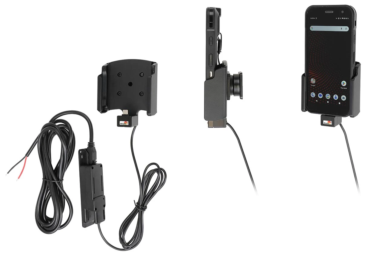 Charging via USB-C connector enables for quick charging. The charging box has two USB ports: Type-A (free for power supply of additional device) and Type-C (connected to the holder). 12/24Volt.