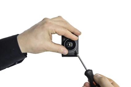 Place the holder over the attaching plate so the tilt swivel fits. Screw the holder onto the attaching plate.