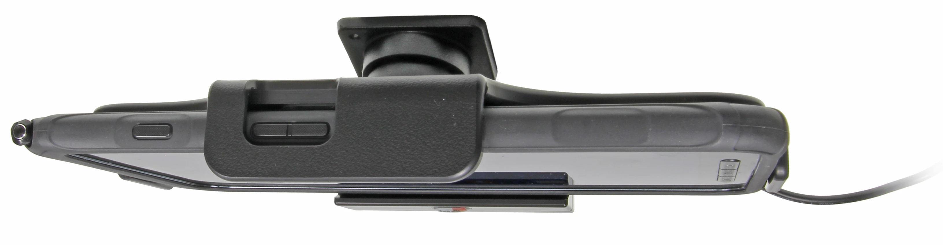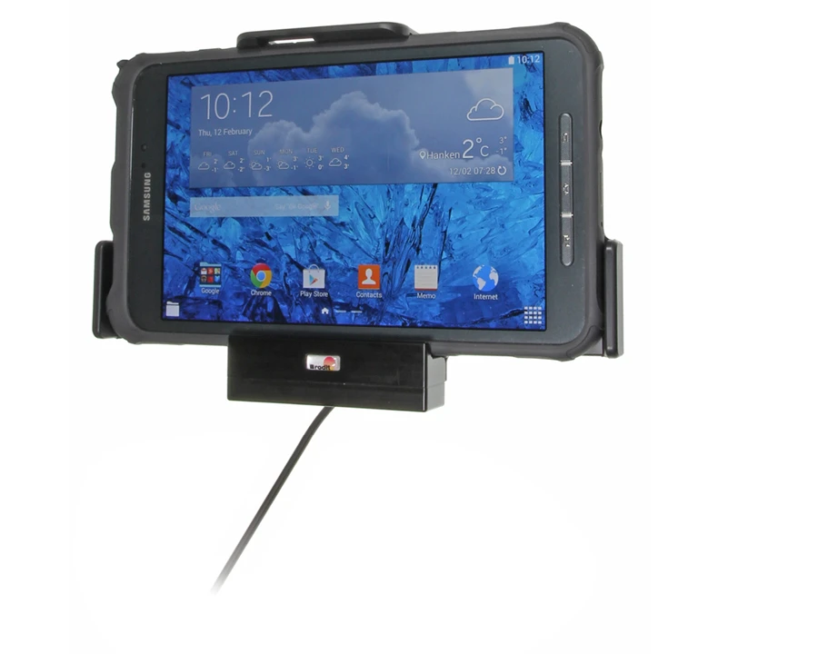 Use an active holder for your Galaxy Tab Active while driving and you will always have a freshly charged battery! The holder provides a neat and comfortable installation - safe and convenient. The holder is equipped with a cig-plug for connection to the vehicle's 12/24 Volt socket. 1A charging. Charging via pogo plug.